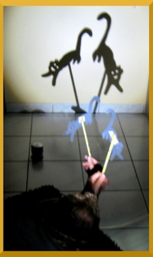 Jetzt kann die Vorstellung beginnen. Um optimale Schattenspiele zu machen, legt man die die Taschenlampe auf einen Stuhl und leuchtet eine freie Wand an. Dann kann gespielt werden.