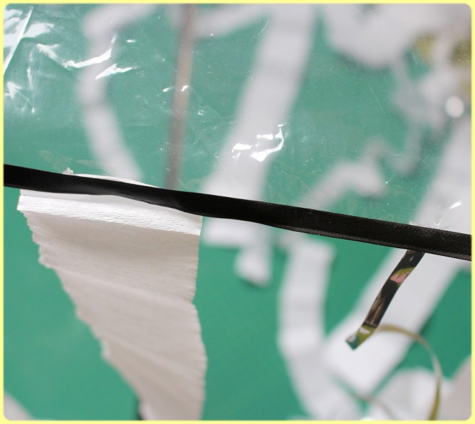 3. Schritt: Fast geschafft! Jetzt schnappt man sich das Krepppapier und schneidet unterschiedlich große Stücke davon ab. Danach rollt man die einzelnen kleinen Streifen auseinander und schneidet diese in der Mitte noch einmal durch. Das sind die Tentakel der Qualle.
